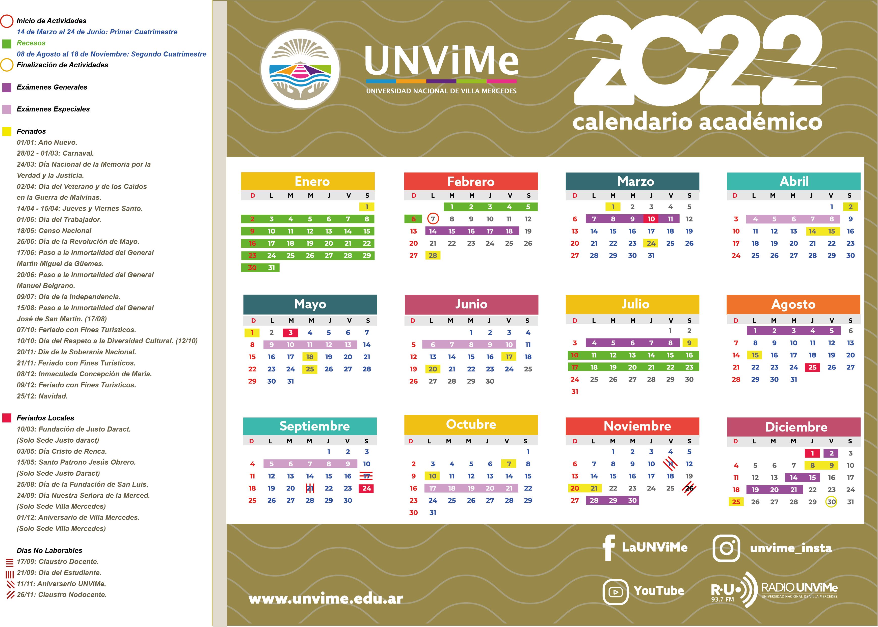Calendario Académico 2024 Cambios en fechas de Mesas de Exámenes de noviembre y diciembre. Versión actual según resolución R.N° 520-2024 Calendario académico y administrativo 2024 según RRNº 9-2024 Descargar Calendario 2024 CALENDARIOS Calendario 2023 Calendario 2022